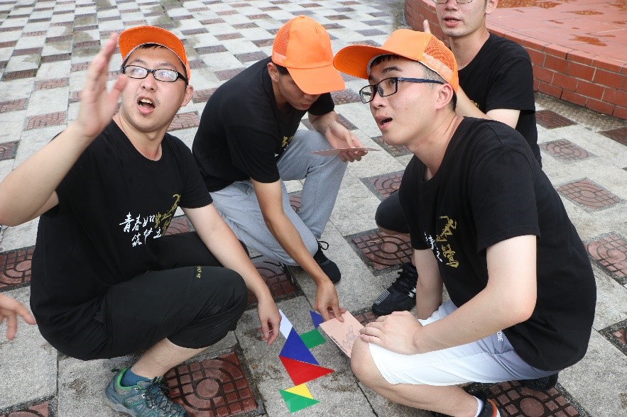 26名虹鷺萌新被分為7個小組,分別模擬企業(yè)中的不同部門。其中,6個小組無法進行直接溝通,需由處于中間位的第七組作為領(lǐng)導(dǎo)組,協(xié)調(diào)配合其它小組完成各自任務(wù)卡上的內(nèi)容。