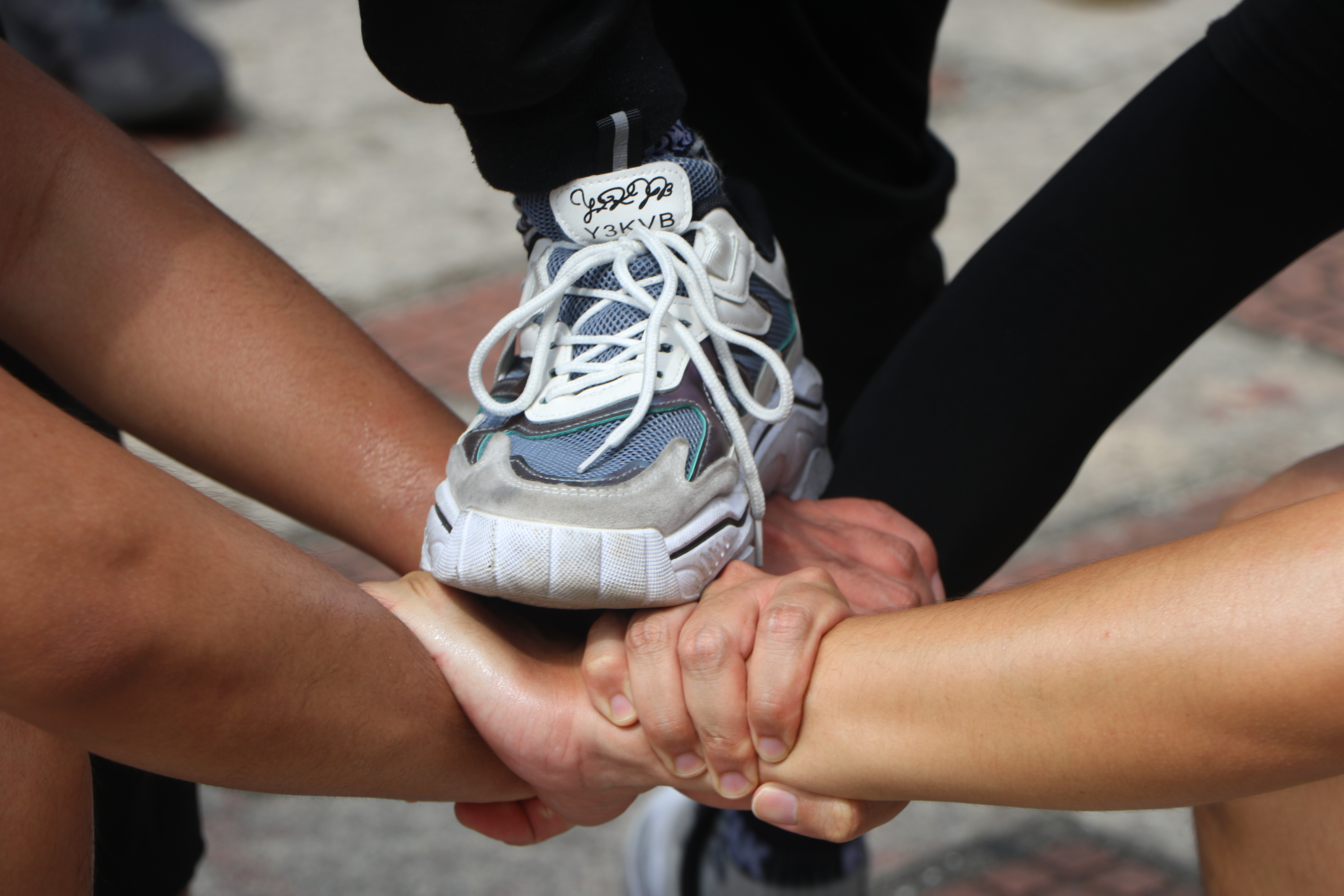 最讓大家不能忘懷的是“畢業(yè)線”挑戰(zhàn),此項目是訓(xùn)練營閉營前的最后一個大考驗。全員需在不得借助任何道具的情況下,翻越近1.5米高的畢業(yè)線,若在翻越過程中觸碰翻越線,則所有人重新挑戰(zhàn)。